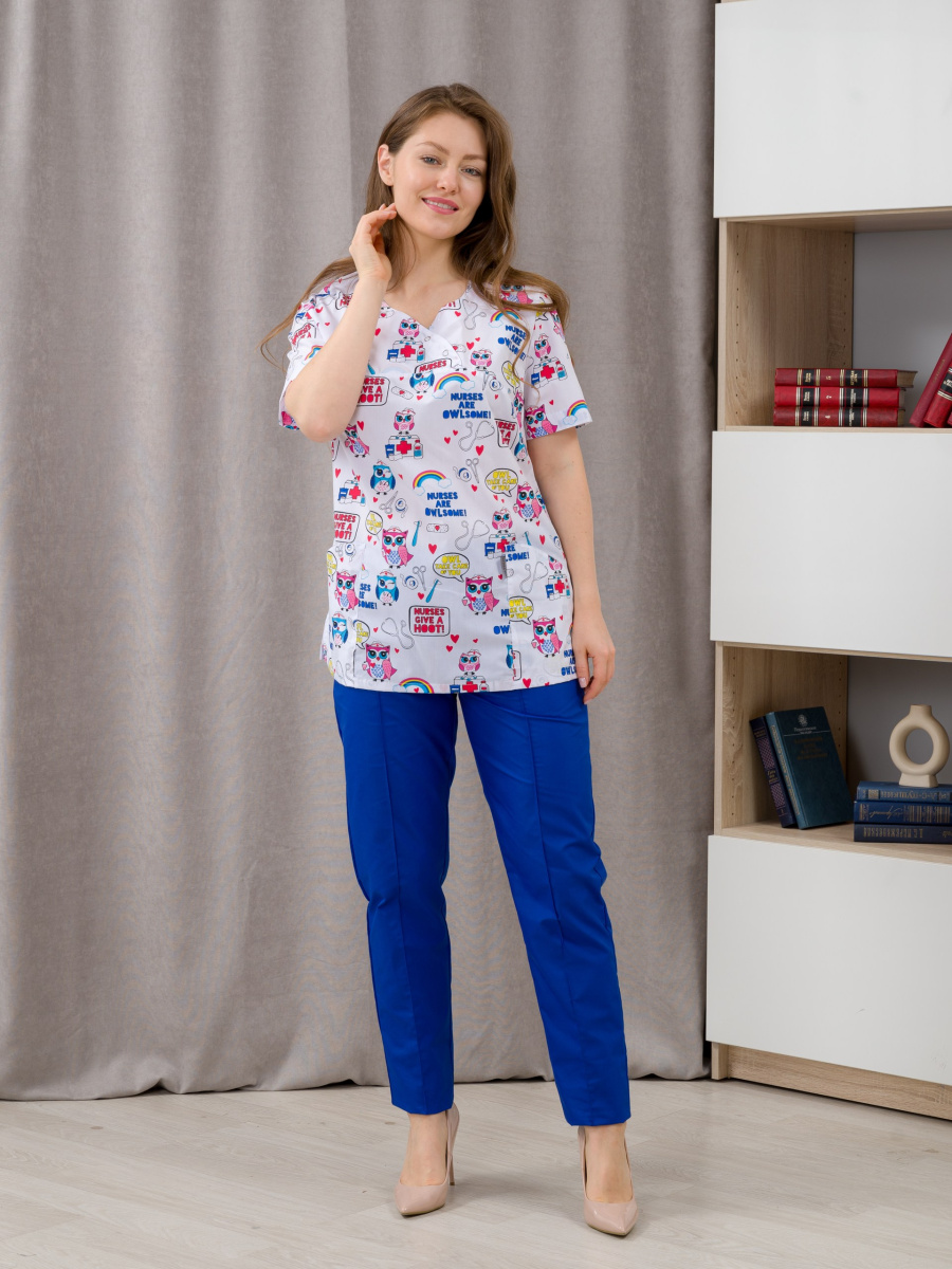 Женский медицинский костюм М-180П M1-0/5. В комплект входит блуза с неглубоким фигурным вырезом и брюки с декоративной стрелкой. Края обработаны кантом в цвет брюк, что делает образ цельным, сшит костюм из специальной ткани ТиСи( 35% хлопок, 65% полиэфир с ВО пропиткой. Размерный ряд 40- 64, Рост 164 – 170 сХарактеристики